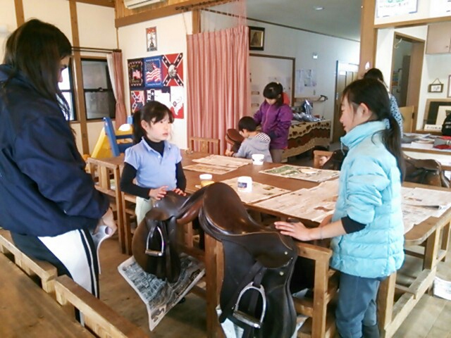 鞍の各部の名称を教えてもらいながら、オイルを塗ります♪