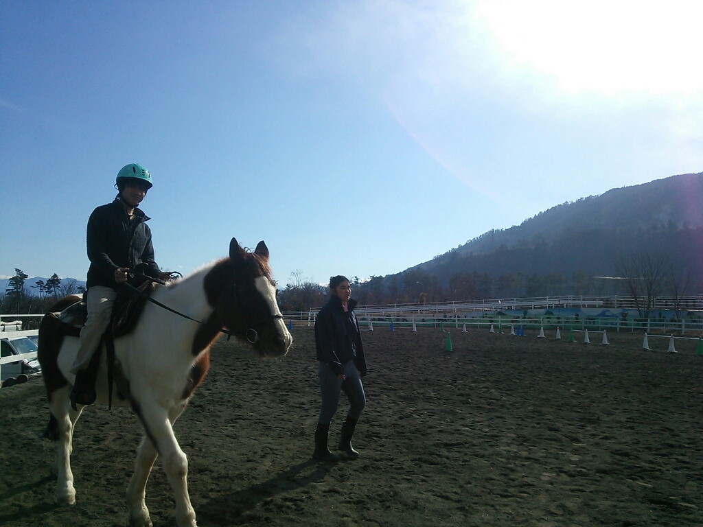 2015,1,11 軽速歩の練習をしている証さん(南アルプス市乗馬センターにて)