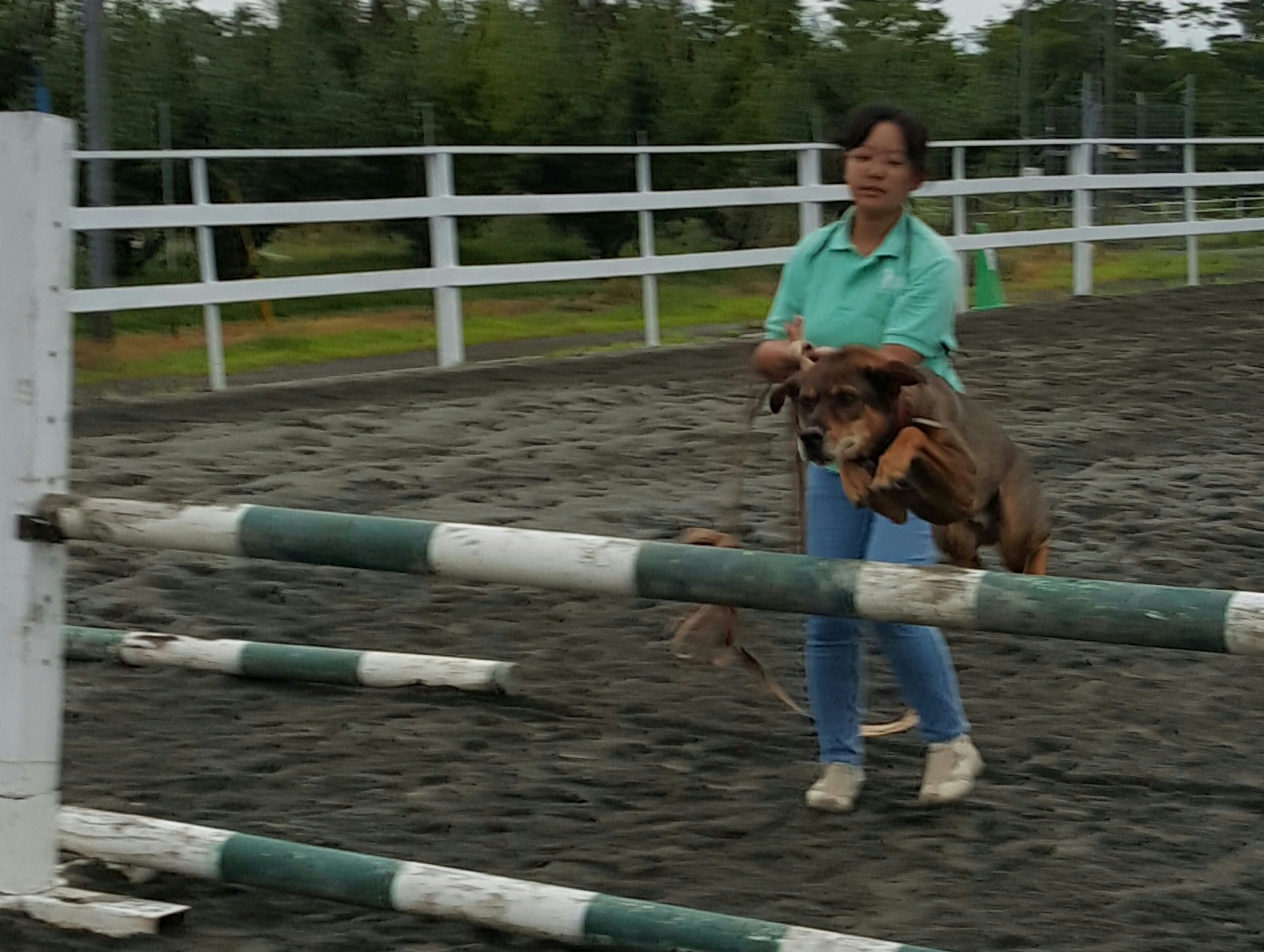 なんと、馬のコスモスよりも高いバーをジャンプする犬のレオくん!!かっこいい~\(^O^)/