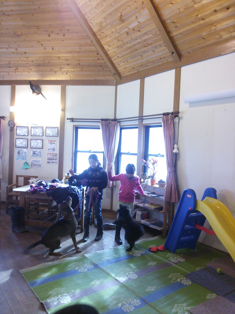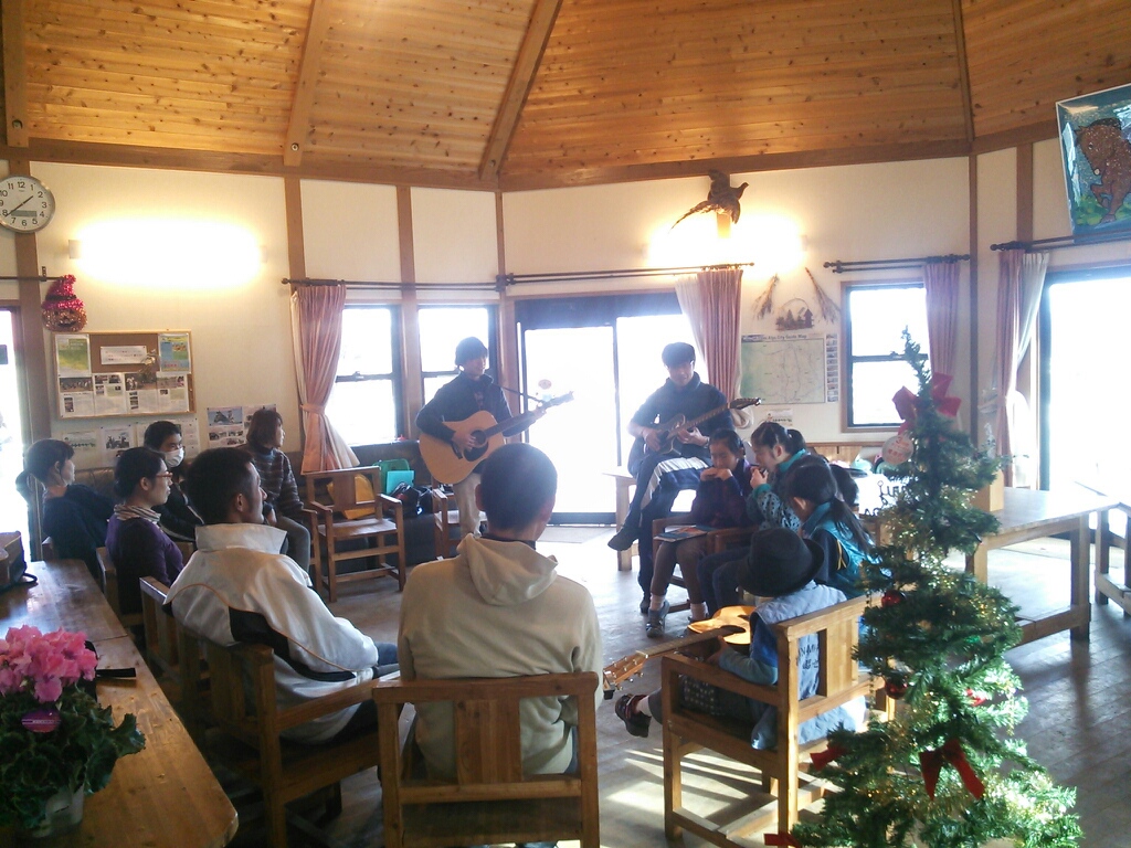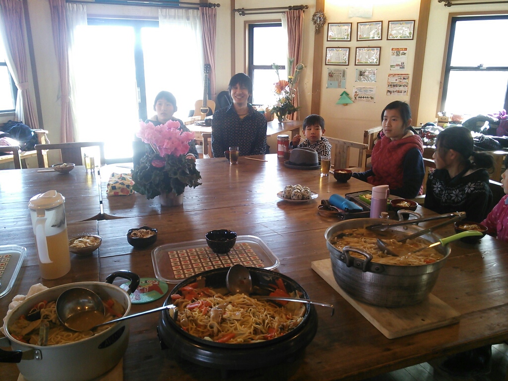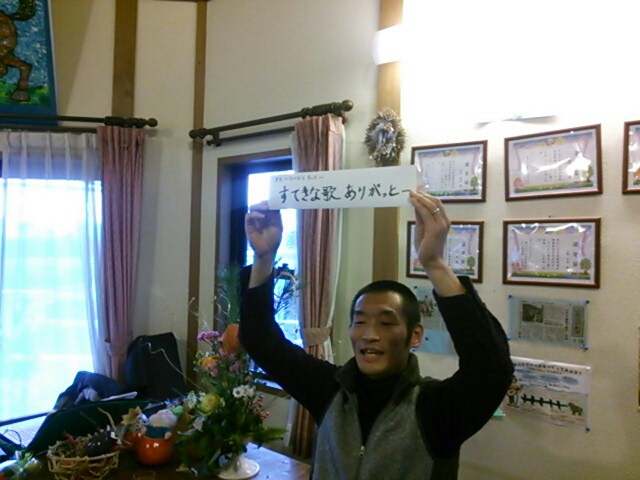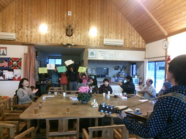 森歌じかん&鍋パーティ♪ 日々の出来事 2015年01月15日 南アルプス市乗馬センターで、証さんの『森歌じかん』が開催されました。この日、お昼は なんと、特別に鍋パーティですo(^o^)o★シンガーソングライター証さんのオリジナル曲『地球ワット』が、この度、エコジャパンカップ2014のグランプリに選ばれ、そのお祝いです♪♪♪みんなが繋がる とても、素敵な曲ですよo(^o^)oそれぞれの提案で、カルボナーラ鍋や味噌バター鍋、普通?の鍋などが、並びました。美味しいお料理は、親御さん方が作ってくださいました(*^_^*)『グランプリ おめでとう、ありがとう』の気持ちを込めて、それぞれが出し物をお披露目(*^O^*)レオとキャノンも頑張ります!!キレの良い演技(*^^*)すごい!!息の合った ハーモニカ演奏♪お祝いの後、証さんに教わりながら、詩や曲づくりをしました。東京からお越し頂いたリンデンハウスのスタッフと利用者さんも詩づくりにチャレンジ!富士山を見ながらの乗馬レッスン後、自然の中で情緒ある詩を作り、それらを証さんが即興で唄ってくれたのです♪皆さん、感激していましたよ~(*^O^*)そして、証さんのライブ『地球ワット』の曲で、「わぁっ~と!!」と、驚かせようと、『おめでとう』のプラカードを掲げて★それぞれ、たくさんのお祝いを考えて、証さんのグランプリをみんなで祝えたことが、証さんからの大きな大きな贈り物。祝っているほうが嬉しくなり、みんながひとつになりました(^○^)証さんが、『地球ワット』の曲で、みんなに 夢を送電してくれましたぁ~(*^O^*)証さんより、『本当に、サプライズで祝っていただいたことは、驚きと共に、ずっと忘れません。あんなに嬉しいことはないですね。皆さんのおかげで、僕は幸せな時間を過ごせています。ありがとうございます(*^O^*)』