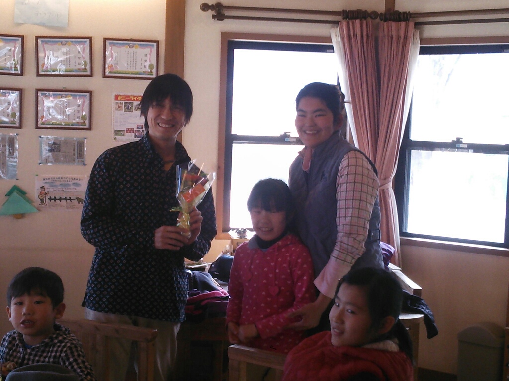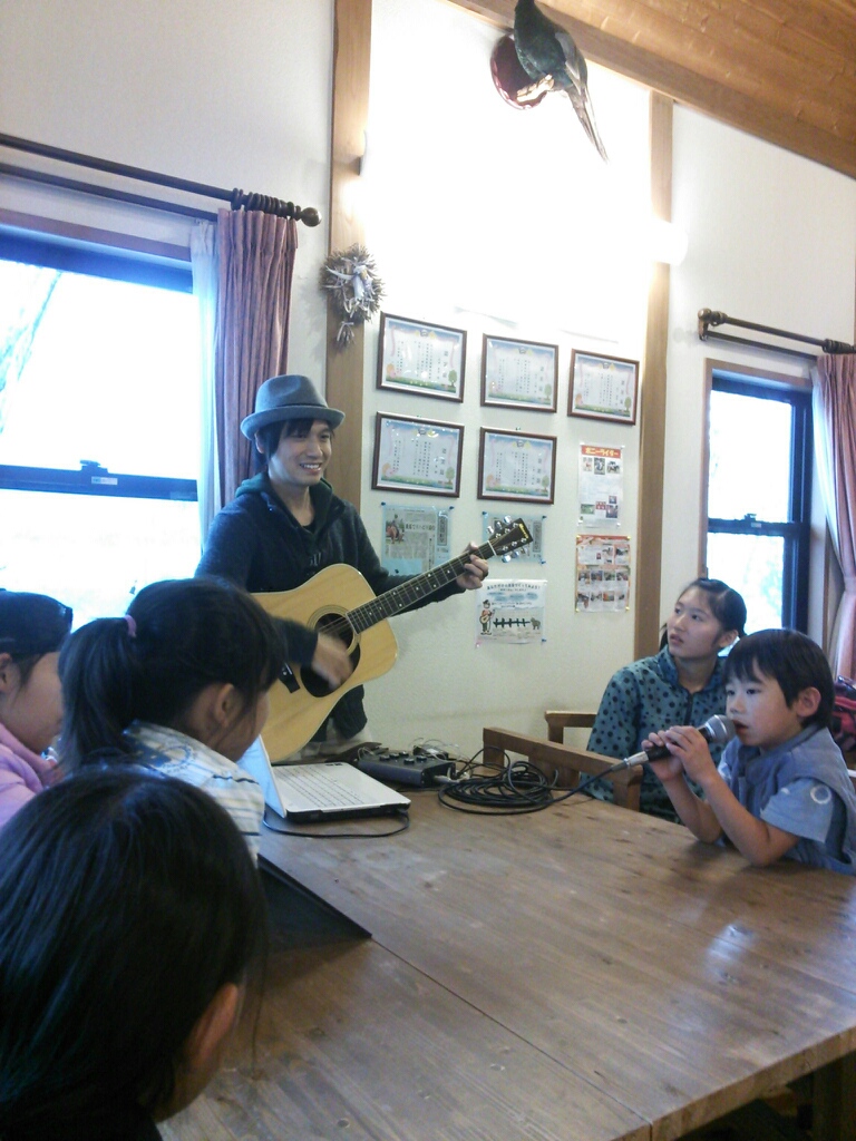 エコジャパンカップ★グランプリ♪ 日々の出来事 2015年01月17日 証さんのオリジナル曲「地球ワット」が、 エコジャパンカップ2014 カルチャー部門エコ ミュージックにて、 グランプリを受賞しました!!そんな 森のシンガーソングライター 証さんのコメントと一緒に今までの写真を紹介します(^-^)/2014,11,9(森歌じかんの講座1回目)~~~~~~~~~~~~~~「森歌じかん vol.3」@南アルプス市が終了しました!1回目の作詞編から始まり、これまで詩を書いたことのないような子ども達が、あっと思うような歌詞やメロディを考えてくるようになりました! 2014,11,9(詩づくり)大人の方も、照れながら書いてくださる作品が、毎回素晴らしいので、講座をやって良かったなあと毎回思うのです。 2014,12,14(クリスマス演奏)今日は「メロディを考えてみる」ということを行いましたが、子ども達の中でも詩は簡単に書けるけどメロディはちっとも出てこない、という子と 2014,12,14(感じたことを詩にしてみる)詩は難しかったけど、メロディを作るのは簡単だったよ、という子がいて一曲完成させてしまったり。 2014,12,14(詩を唄ってみる)この子は参加しないだろう…まさかこの人が…と普段思ってる人が、どんどん曲を作っていく姿を見ると、ほんとに素晴らしいと思います。 2014,12,14(大切なものを絵にして、それを歌に)自分だけの曲たちが、いよいよ形になってきました(*^^*)。そして今回は、僕のエコジャパンカップのグランプリ受賞について、皆さんが様々な形でお祝いのサプライズを仕込んでくださっていました!いつもは証が演奏を披露しているから、今日は逆に自分たちが…とお世話になってる皆様や子ども達が出し物を披露してくださったり「地球ワット」を歌ってください!とリクエストがあったので、歌い始めたら、子ども達が「グランプリおめでとう!」の替え歌で返して来たり(°_°)! 2015,1,11(地球ワットの替え歌)外で遊ぼう!と馬場に引っ張り出されて、逆立ちできる?とみんなで技を披露していたら、いつのまにか証が胴上げされていたり!あらゆるところで、巧妙にサプライズが組まれていて、子ども達の発想力に驚かされました!あんなにあの手この手で祝ってもらったのは初めてで、本当は泣きそうなくらい感動してました(;д;)。ほんと、グランプリだのなんだの、どうでも良くなるくらい、僕は皆さんに愛され支えられてやってきたんだということを感じました。南アルプス市乗馬センターの皆さん、それからポニークラブの子ども達。今日たまたまいらしてくださった、グループホーム リンデンハウスの皆様。今日はお腹いっぱいです。ああ、気持ちもいっぱいです。ありがとうございましたーーー(;д;)!! ~~~~~~~~~~~~~~~証さんのブログより(他の写真もありますよ~☆ご覧くださいね)energy treehttp://ameblo.jp/rivasai/~~~~~~~~~~~~~~~ここ、南アルプス市乗馬センターの場所は、去年、ユネスコ エコパークに登録された地域にあります。これから、自然と人が共生する南アルプスとして、注目されてゆきます。そんな地域へ、証さんのような エコ ミュージシャンが、毎月、来ていただいていることは、どんなに光栄なことでしょうか(*^O^*)証さん、こちらこそ、ありがとうございます\(^o^)/2015,1,11 軽速歩の練習をしている証さん(南アルプス市乗馬センターにて)
