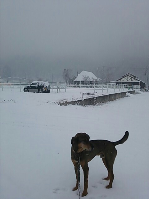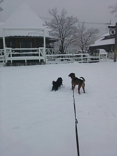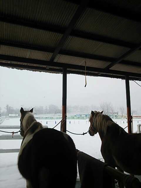 調馬索運動 日々の出来事 2015年01月30日 今朝の南アルプス市乗馬センターです。早朝から夕方まで、ふわふわの軽い雪が、降り続けました。レオの散歩♪放牧地のある親水公園です。馬房掃除中、蹄洗所から、雪を眺めるふたり。今日は、近所のしゅうじさんも来てくださり、スタッフみんなで、雪かきをしました。犬のレオの調馬索運動(^-^)/うまく、円運動をしていましたよ。それをキャノンが、オオハシャギで、追いかけていました(*^O^*)