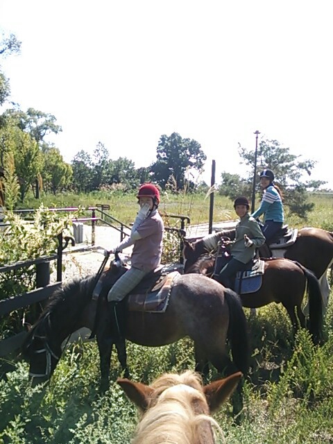 馬場で、レッスンを受けてから、初心者の方でも、川沿いのお散歩を楽しむことができます。