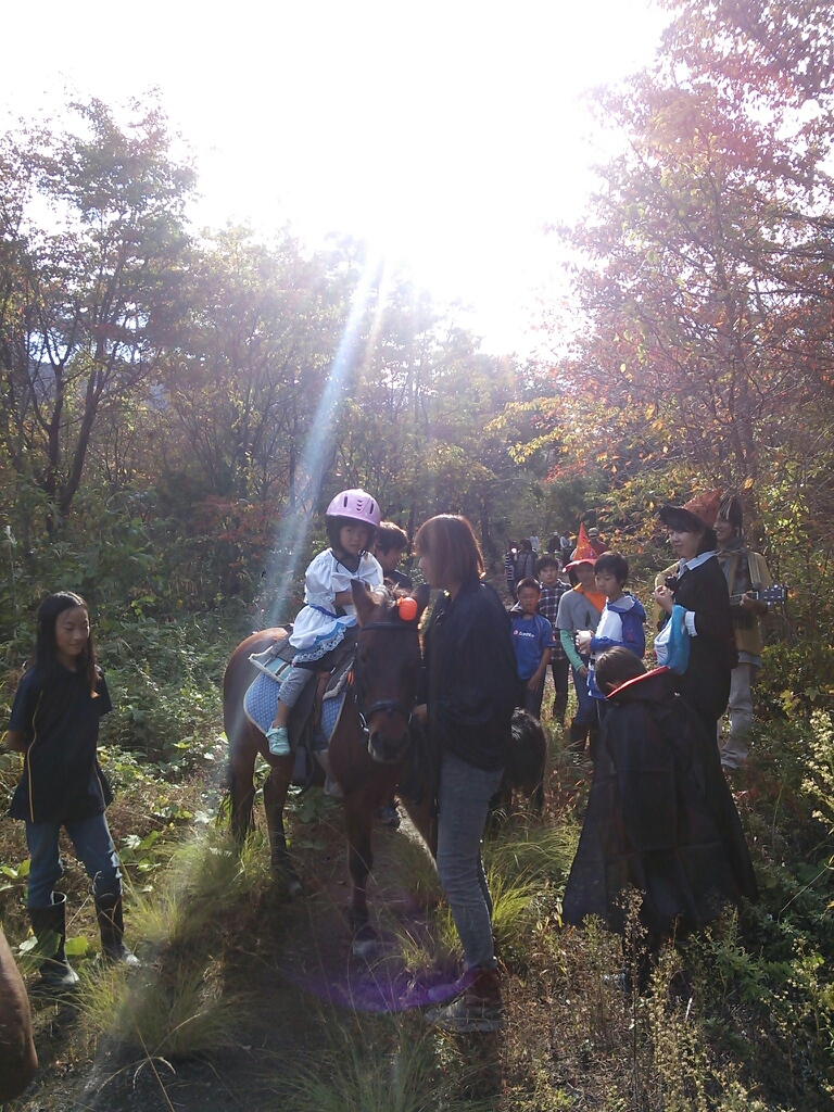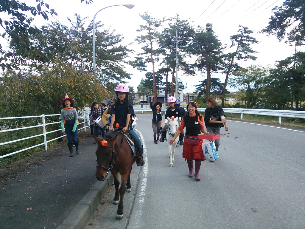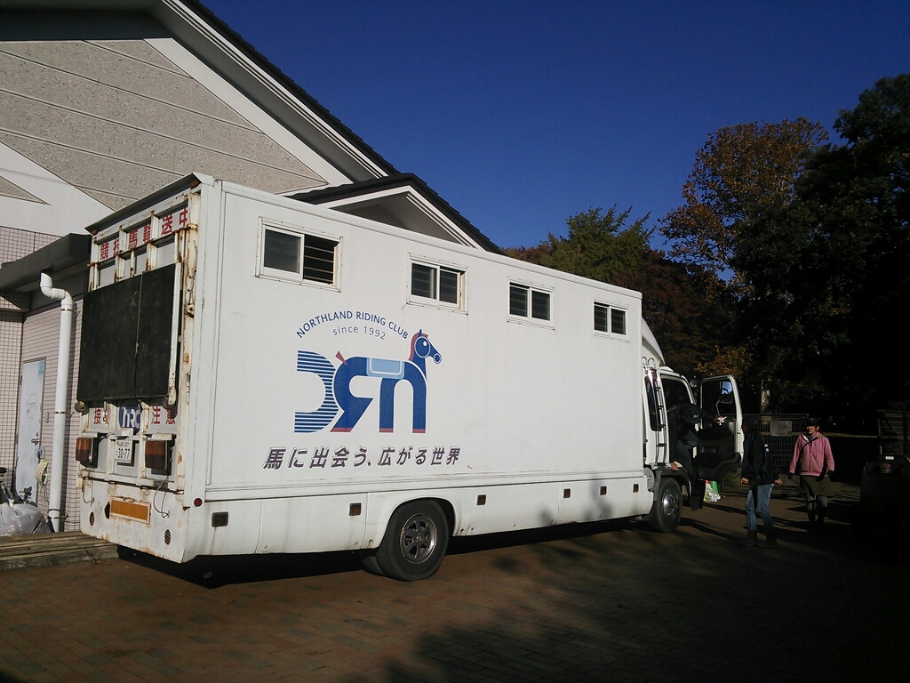 前日から、ノースランド ライディングクラブの馬運車で馬を運んでもらい、当日、公園いりしてもらいました。