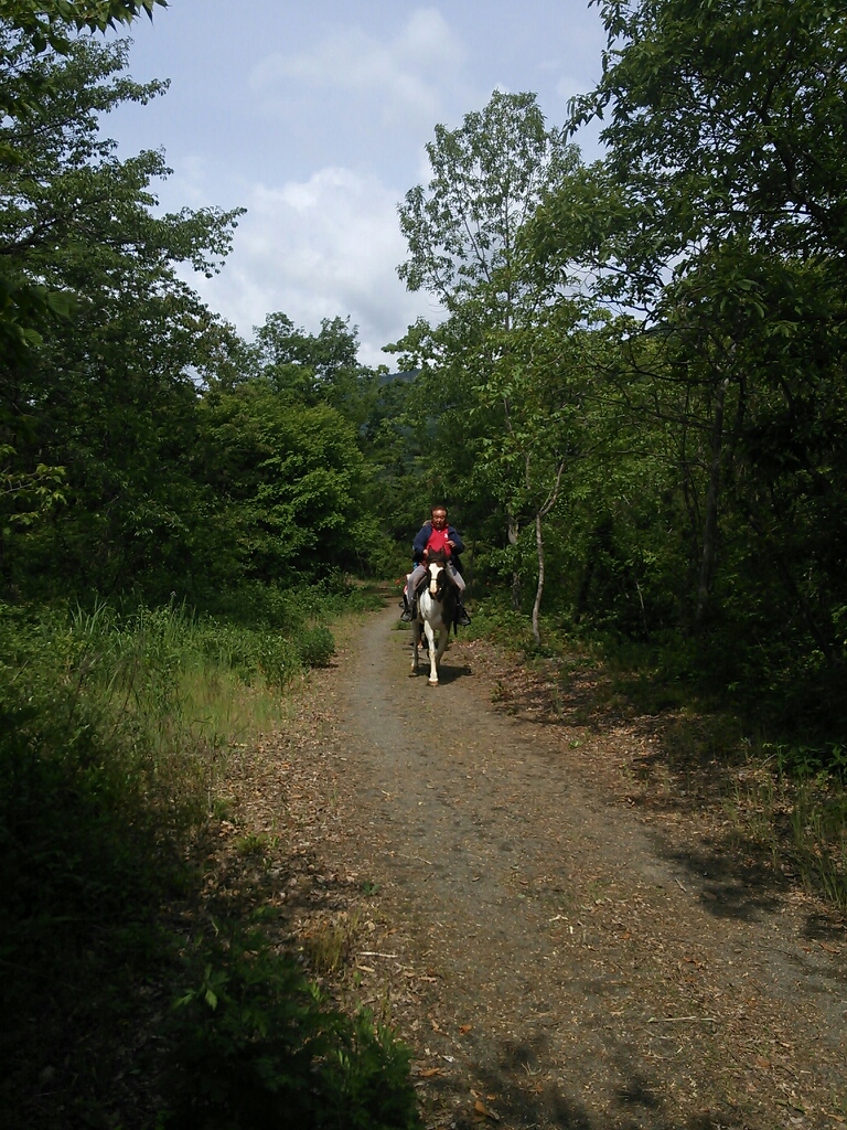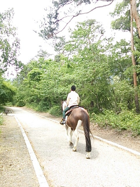 帰りは、2頭に たっちゃんと まみちゃんが乗って馬道を。