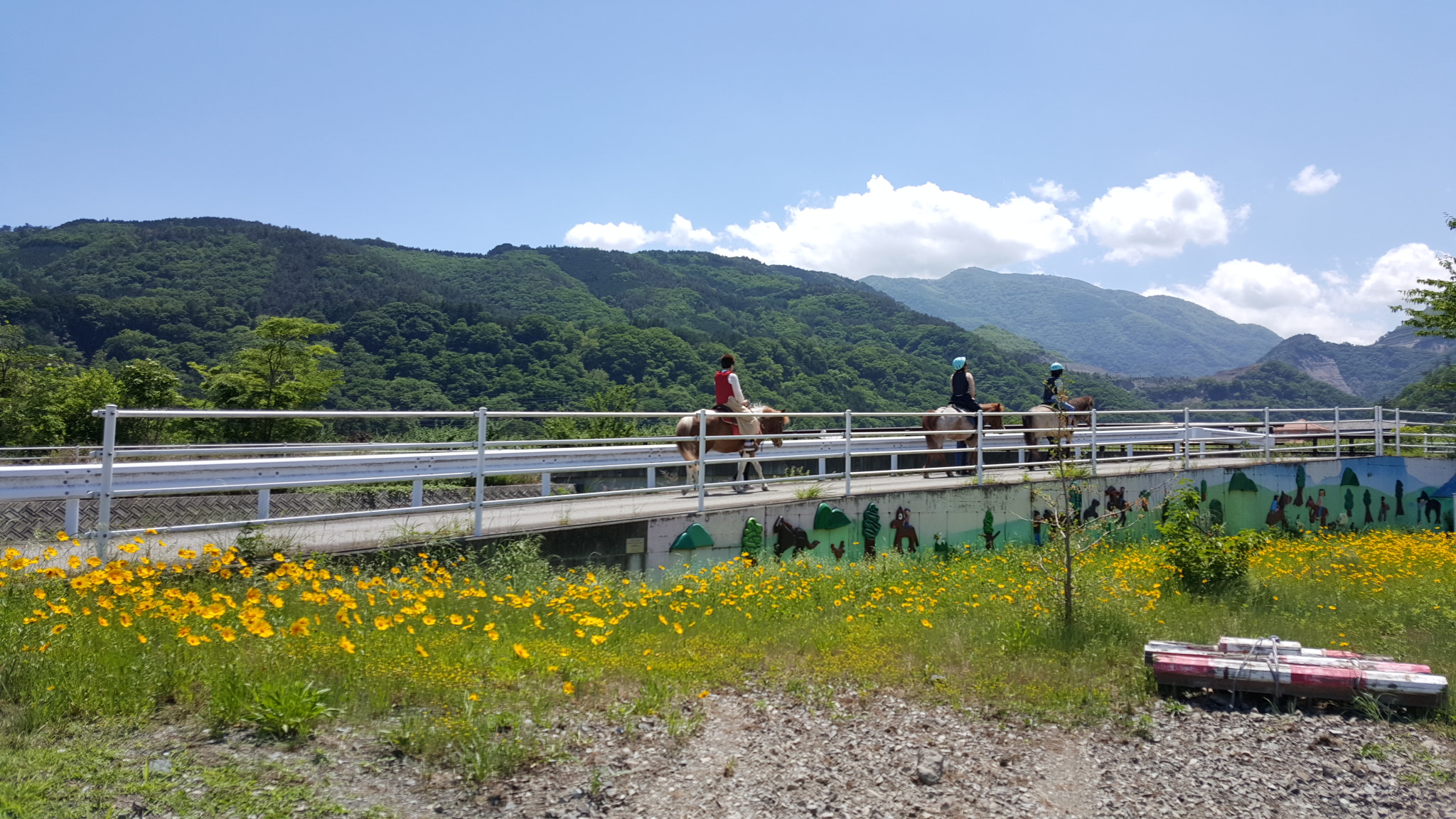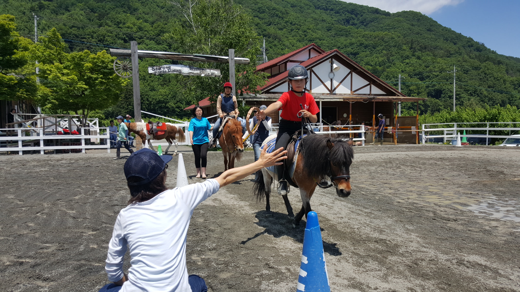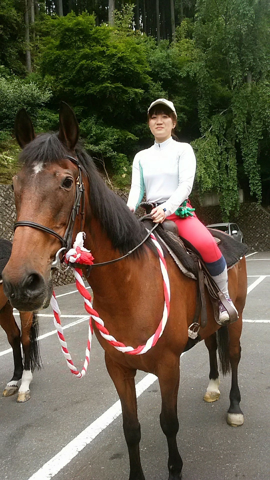 5月の外乗馬 日々の出来事 2017年05月31日 南アルプス市乗馬センターでは、初心者の方の外乗も行っています(^O^)馬場で手綱操作(たづなそうさ)や速歩(はやあし)を体験してから、外へ乗りに行きますよ(^O^)千葉と東京から、お友だち同士での乗馬体験です。 道草タイムの時に記念撮影(^O^) 速歩(はやあし)にもチャレンジです(^○^)乗り終わってからも馬の手入れや餌やりをやってふれあいを楽しんでくださっていました(^O^)~~~~~~~~~~~~~~~~~~~~~~~※この季節は、土曜、日曜とご予約のお客様が多いです。お待ちいただくケースがありますので、乗馬レッスンや外乗をご希望のお客様は、ご連絡ください。南アルプス市乗馬センター 055-285-8181