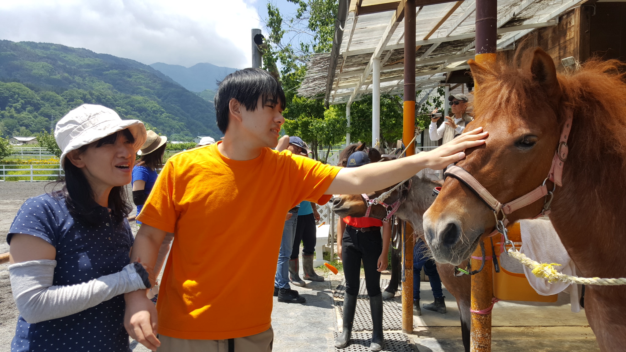 スペシャルオリンピックス山梨 乗馬 日々の出来事 2017年06月06日 南アルプス市乗馬センターでは、4月より、スペシャルオリンピックス山梨の活動が、毎月、開催されることになりました。ポニーくらぶのメンバーが先導馬に跨がり、お手本を見せながら、馬上体操をします。 慣れてきたアスリートは、速歩(はやあし)も。 輪投げを持ち換えたり、馬の上でバランスをとりながら、手渡しをします。 乗馬の後は、お馬さんとふれあって、ブラシ掛けなどをやってもらいました(^O^) 2017,5,27