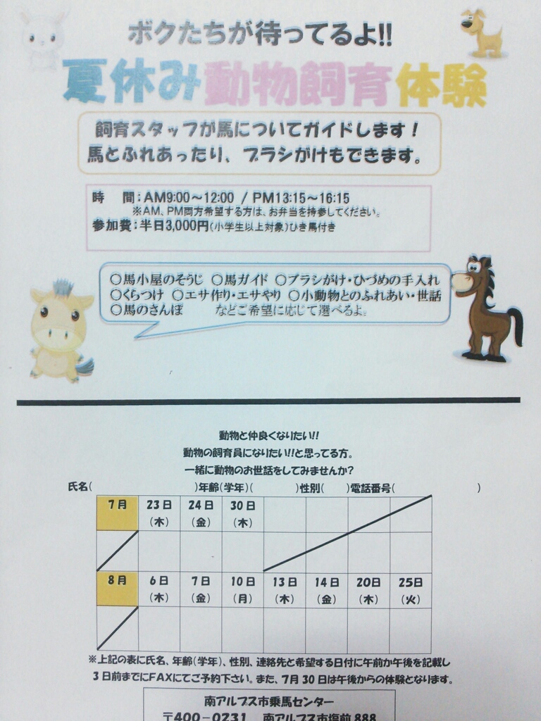 詳しくは、お問い合わせ頂くか、乗馬センターに申し込み用紙がありますので、必要事項を記入して提出してくださいね。