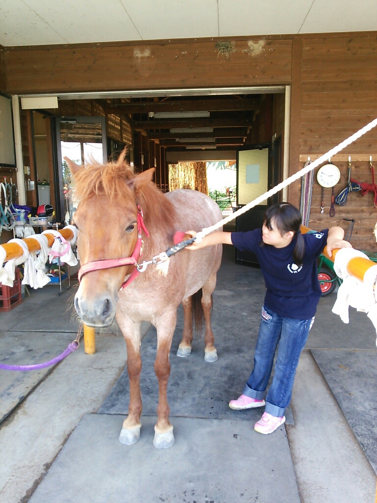 大きな馬のブラシがけもします♪