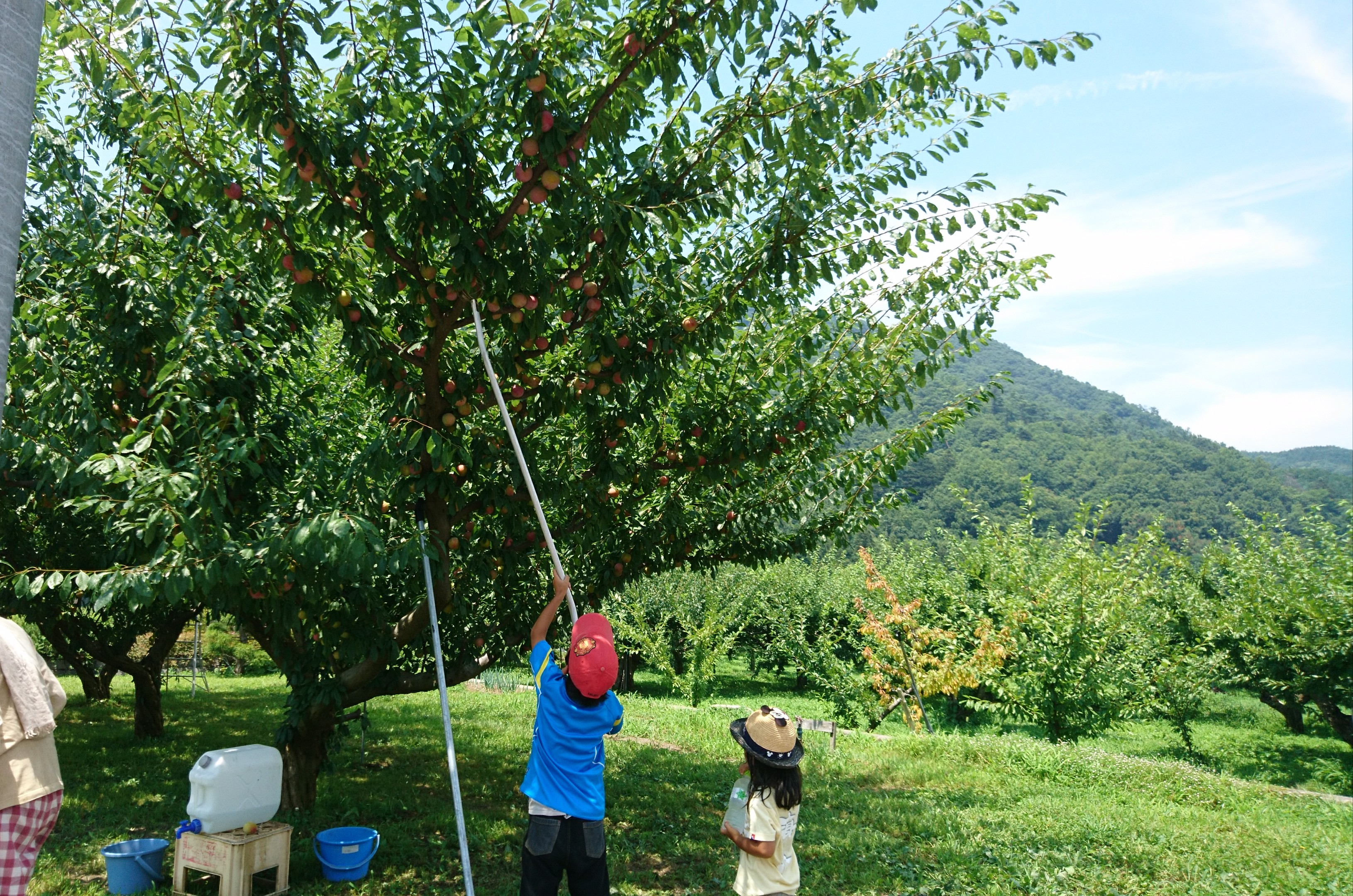 すもも狩り 日々の出来事 2018年07月17日 南アルプス市乗馬センターのお隣の畑では、すももが赤くなってきています!例年より早めに すもも狩り企画が始まりました\(^o^)/毎年、すもも生産者のえんや かずとしさんの畑で、すもも狩りを楽しませて頂いております。 便利な つかみとり棒を使って、すももを採ります(^ー^) 上手にとれました!ほっぺと同じ色(*^O^*) 乗馬レッスンのお客様は、すもものお土産付きですよ~!(^○^)!すももに葉っぱがついたまま採れると 飾りたくなりますね~(*^O^*)~~~~~~~~~~~~~~すもも食べ放題 500円すもものお土産 500円お問い合わせ南アルプス市乗馬センター 055-285-8181