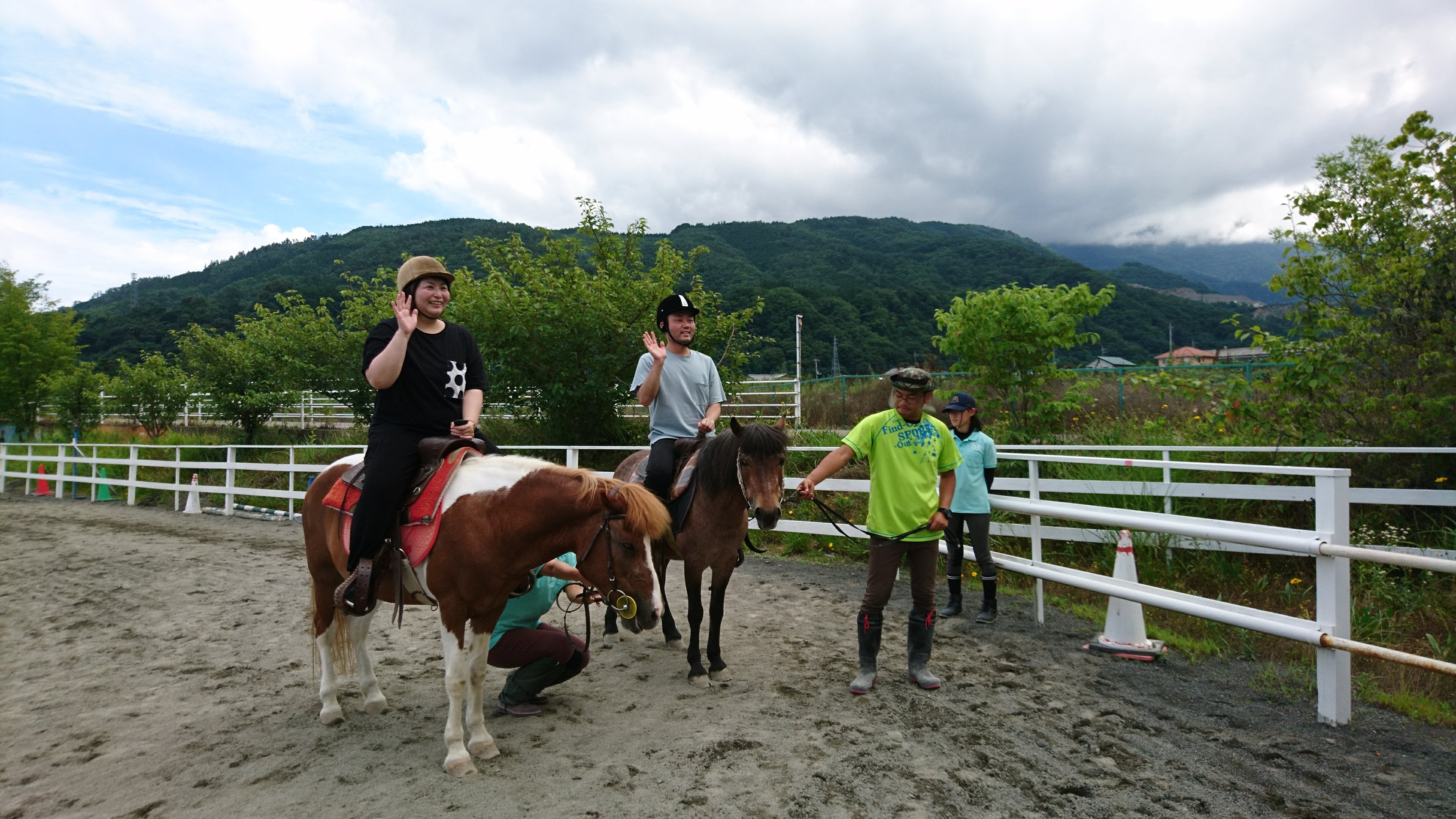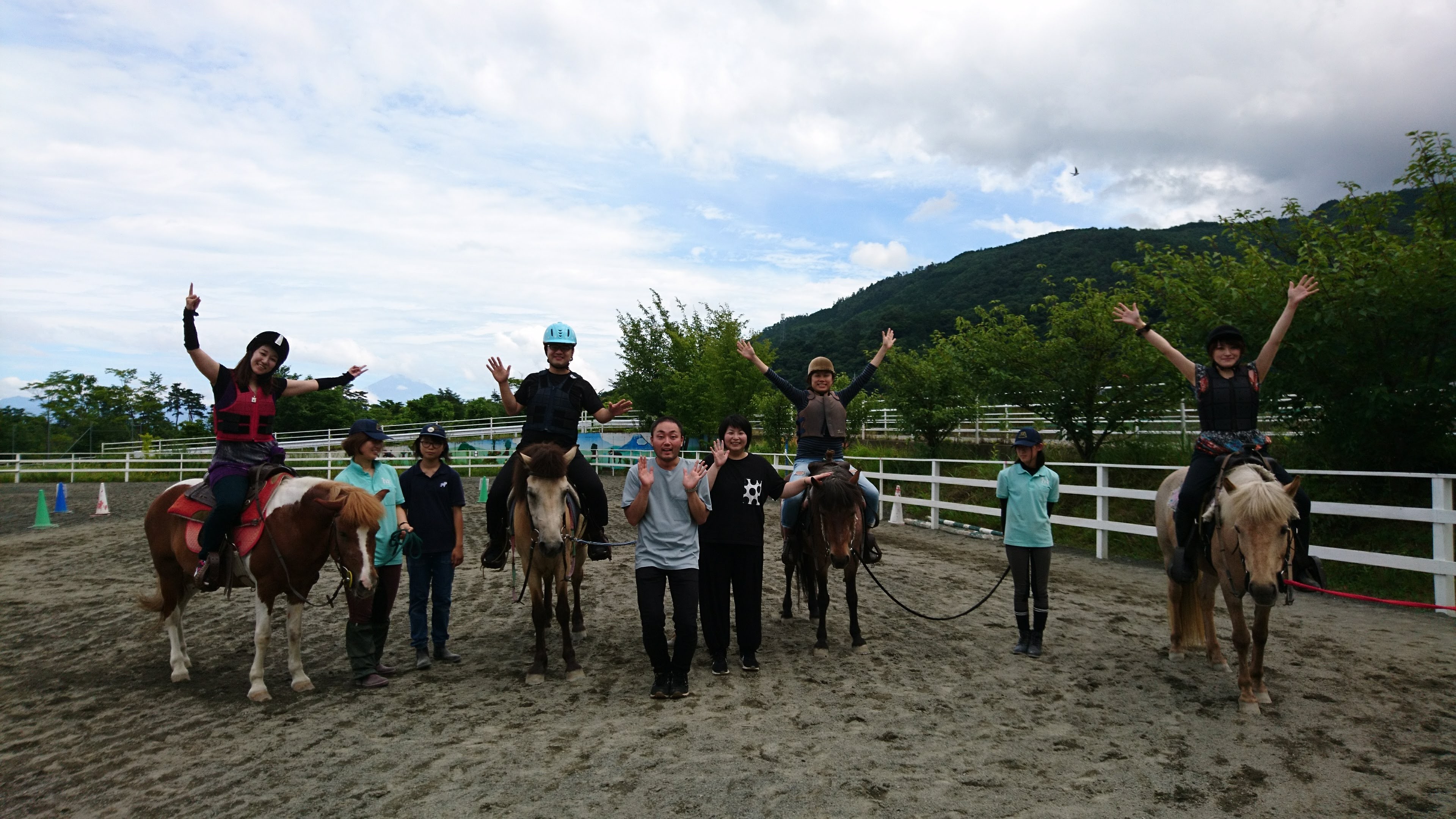 山梨を満喫~(^O^) 日々の出来事 2018年07月18日 南アルプス市乗馬センターに遠方から、乗馬レッスンのお客様です(^O^)地元のお友達から誘われて、山梨を満喫しているとのことです♪ みなさん、会社員でもあり、週末は、ミュージシャンの方々でもあるようですよ(*^^*)今度、ぜひ、クラブハウスで演奏してくださ~い\(^o^)/