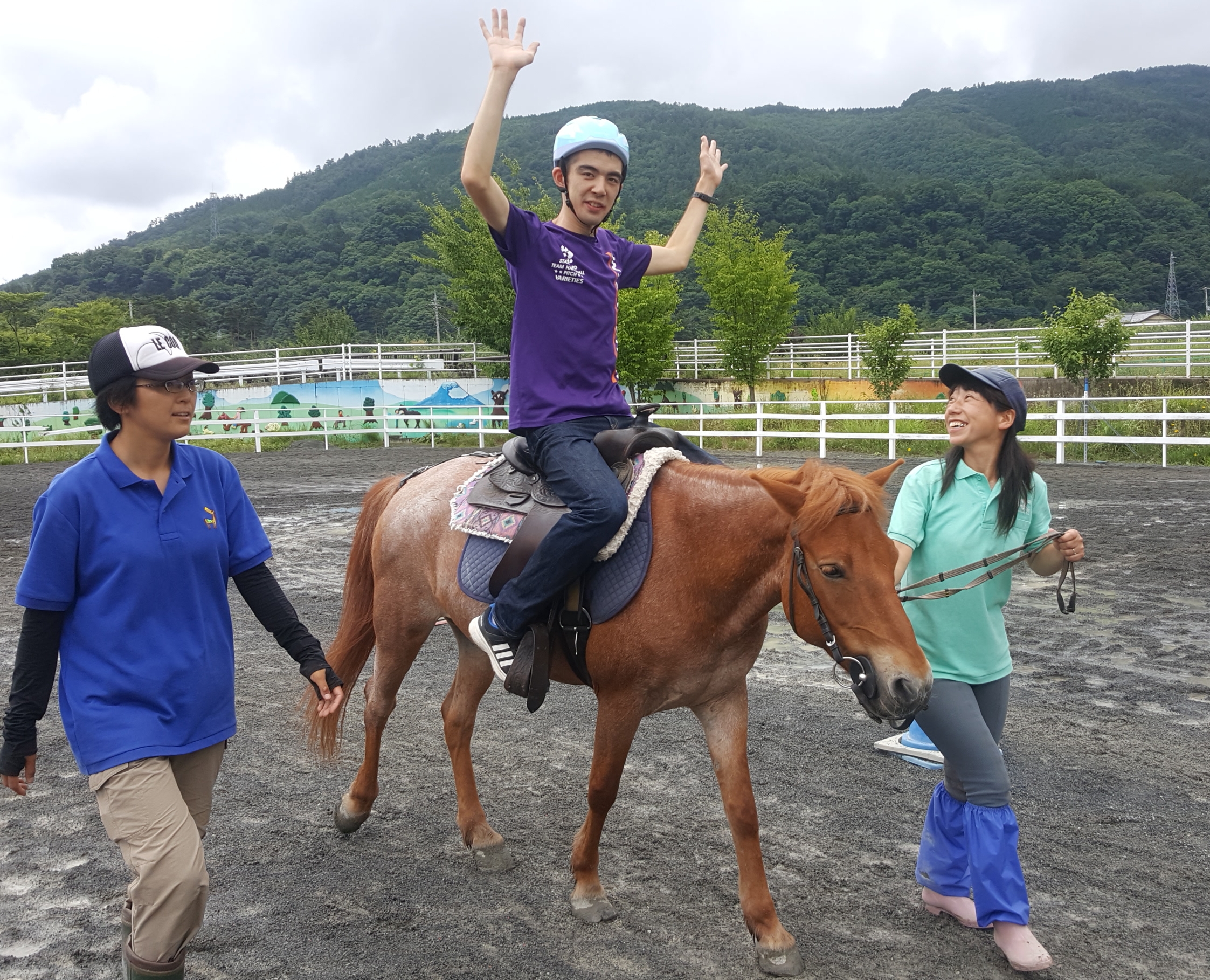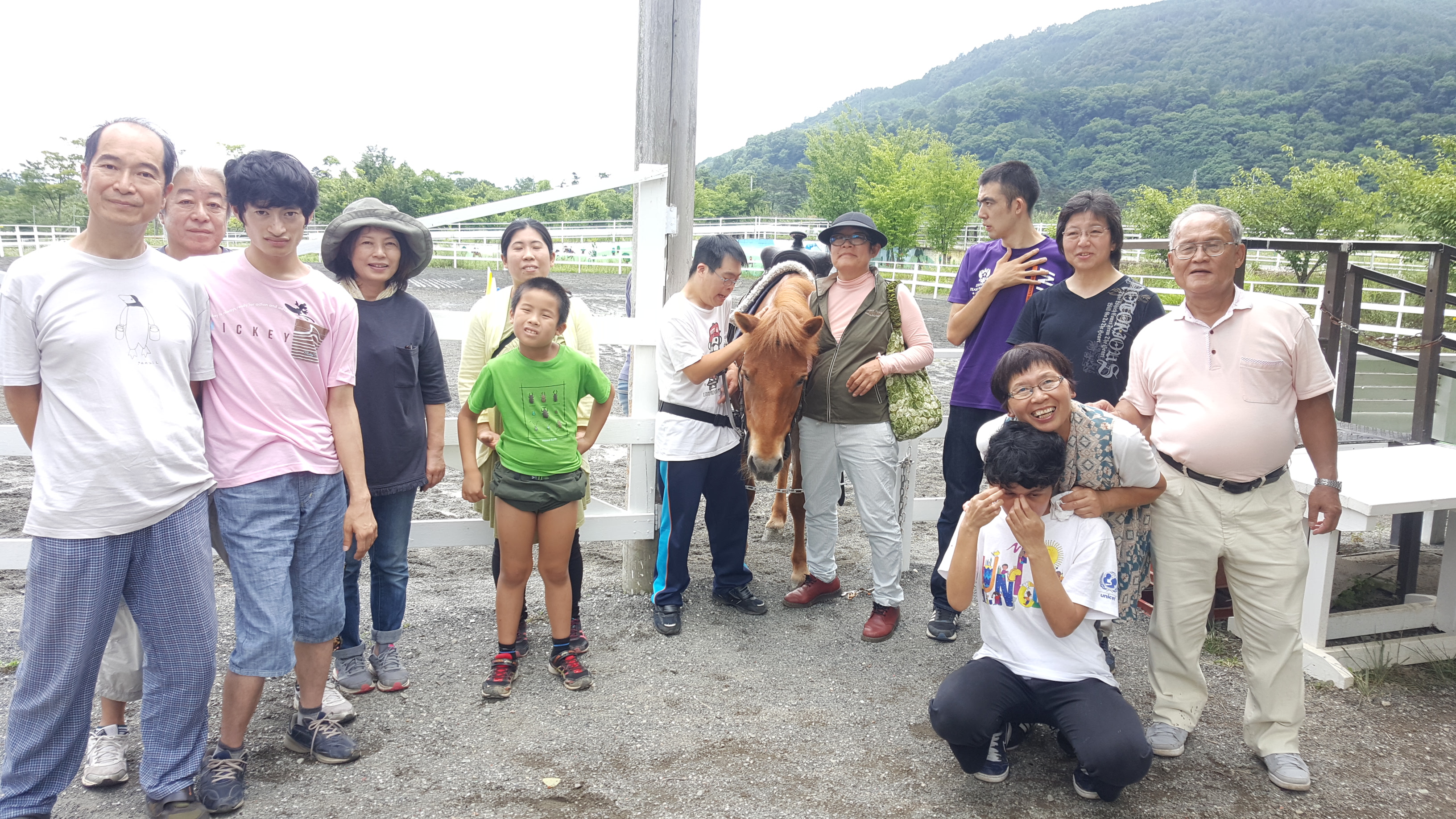 サンフラワーズの皆さん 日々の出来事 2017年08月09日 都内から、南アルプス市乗馬センターへ 乗馬とすもも狩りに訪れてくれた『サンフラワーズ』の皆さんです!先に美味しそうな『すもも狩り』です! 背の高いTくんは、ひょいっと、高いところのすももをとってくれます(^○^) 乗馬センター正面のえんやかずとしさんの農園です。便利な すもも取り機を使っての収穫! 以前、毎月のように都内で、乗馬していたメンバーは、飛行機のように両手離しもしました! 親御さん方も、順番に乗馬を楽しみました(^○^) バランスいいですね~\(^o^)/懐かしいわぁって、お馬さんたちに会いに来てくださるのも嬉しいですね(*^^*)また、お待ちしておりま~す♪