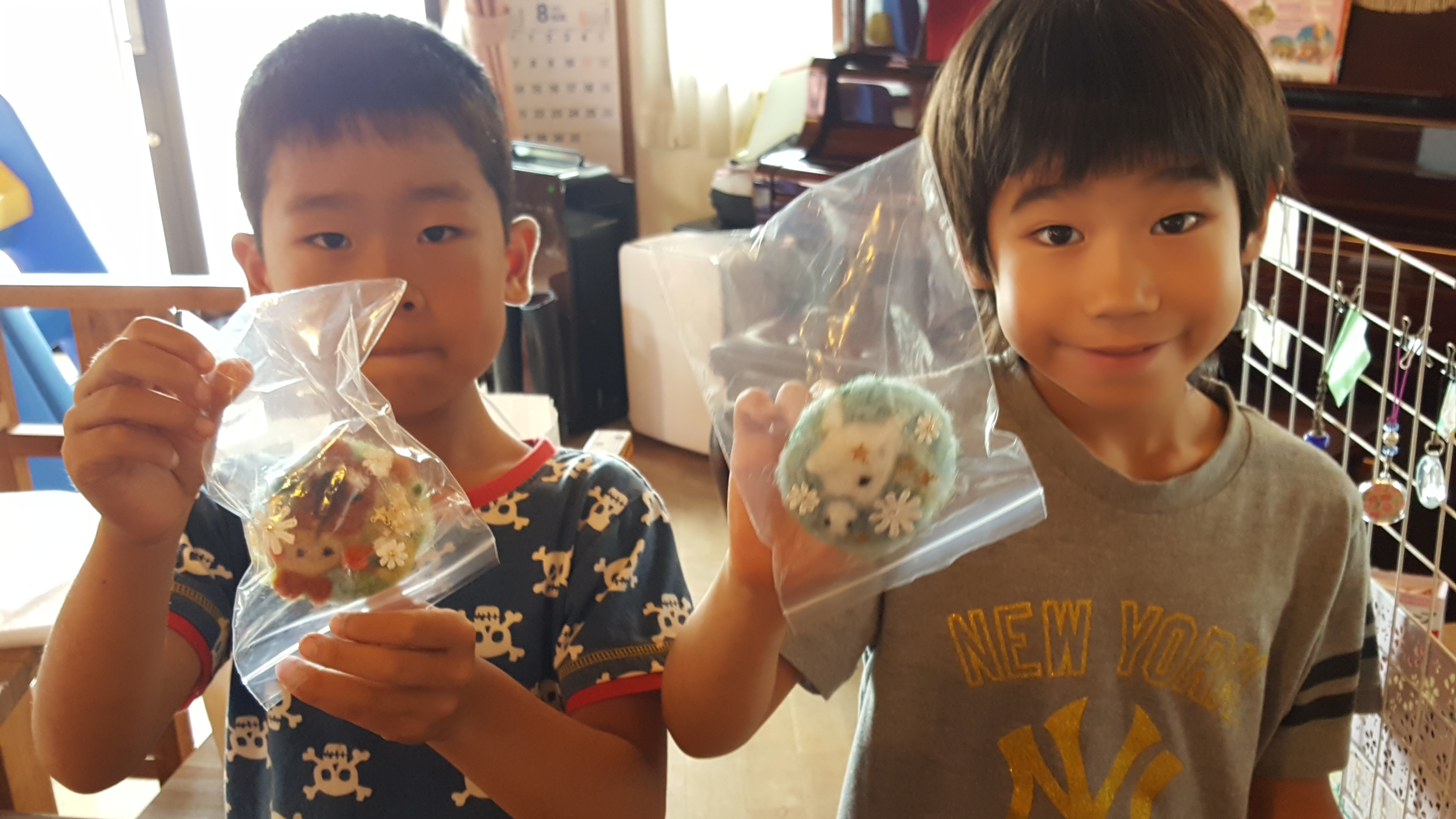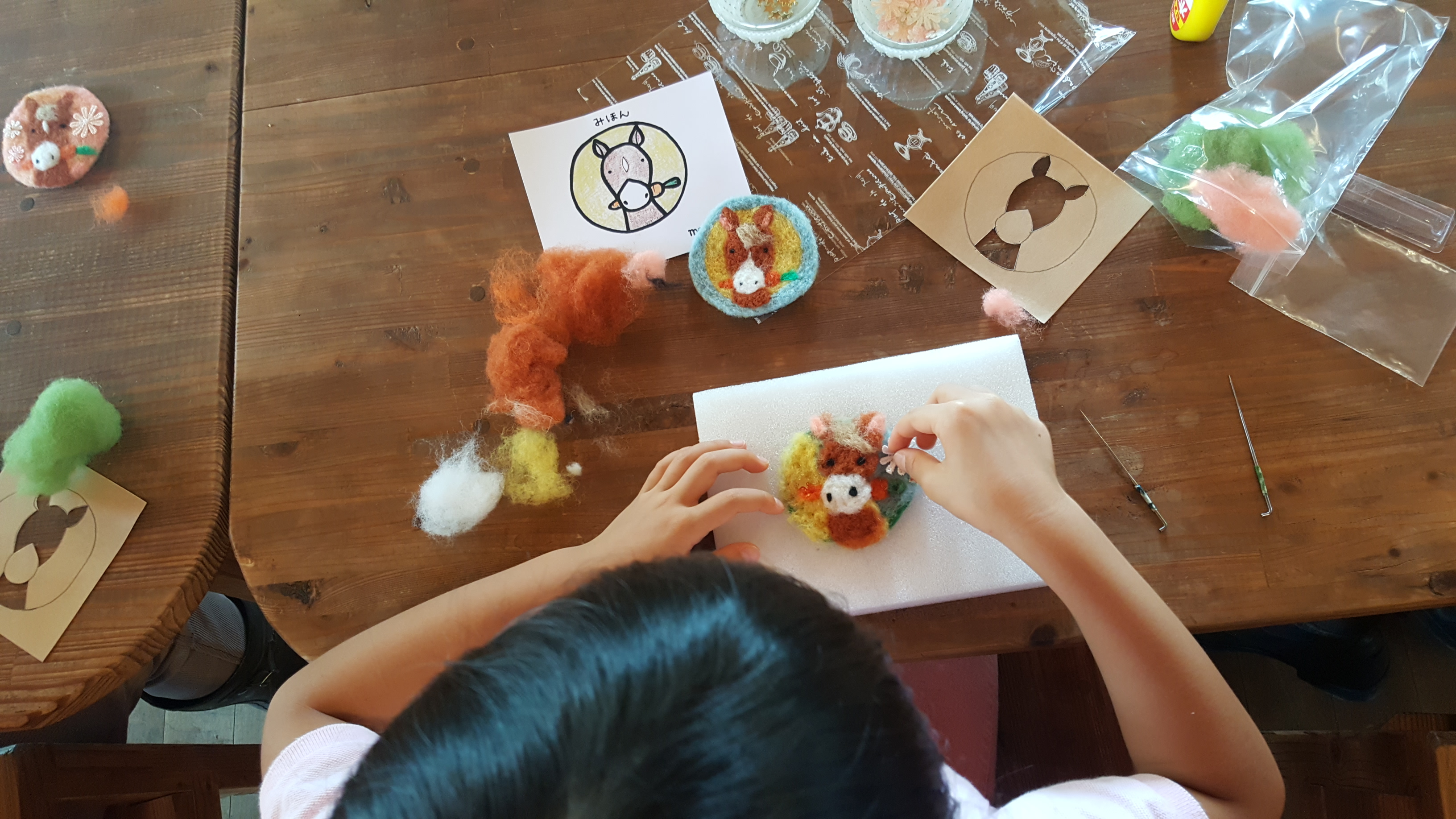 馬の可愛いブローチ! 日々の出来事 2017年08月29日 南アルプス市乗馬センターにて、羊毛フェルト作家の荻原弘子先生をお呼びして、ブローチ作りをしました! 8月13日(日)には、午前と午後の2回、羊毛フェルト教室を開催! 乗馬の後に、小学生の男の子たちも真剣にブローチ作り(^O^) 弘子先生の羊毛フェルトのキットがあるので、初めての方も楽しめます! かわいい馬のブローチ! 大好きなポニーの顔を自由に描けるから、オリジナルのブローチになりました! 午後の部もじっくり、ゆったり、作品に向き合っている みなさんの集中力に驚きました!★今回の羊毛フェルト作家 荻原弘子先生のHPです。morin工房公式サイト