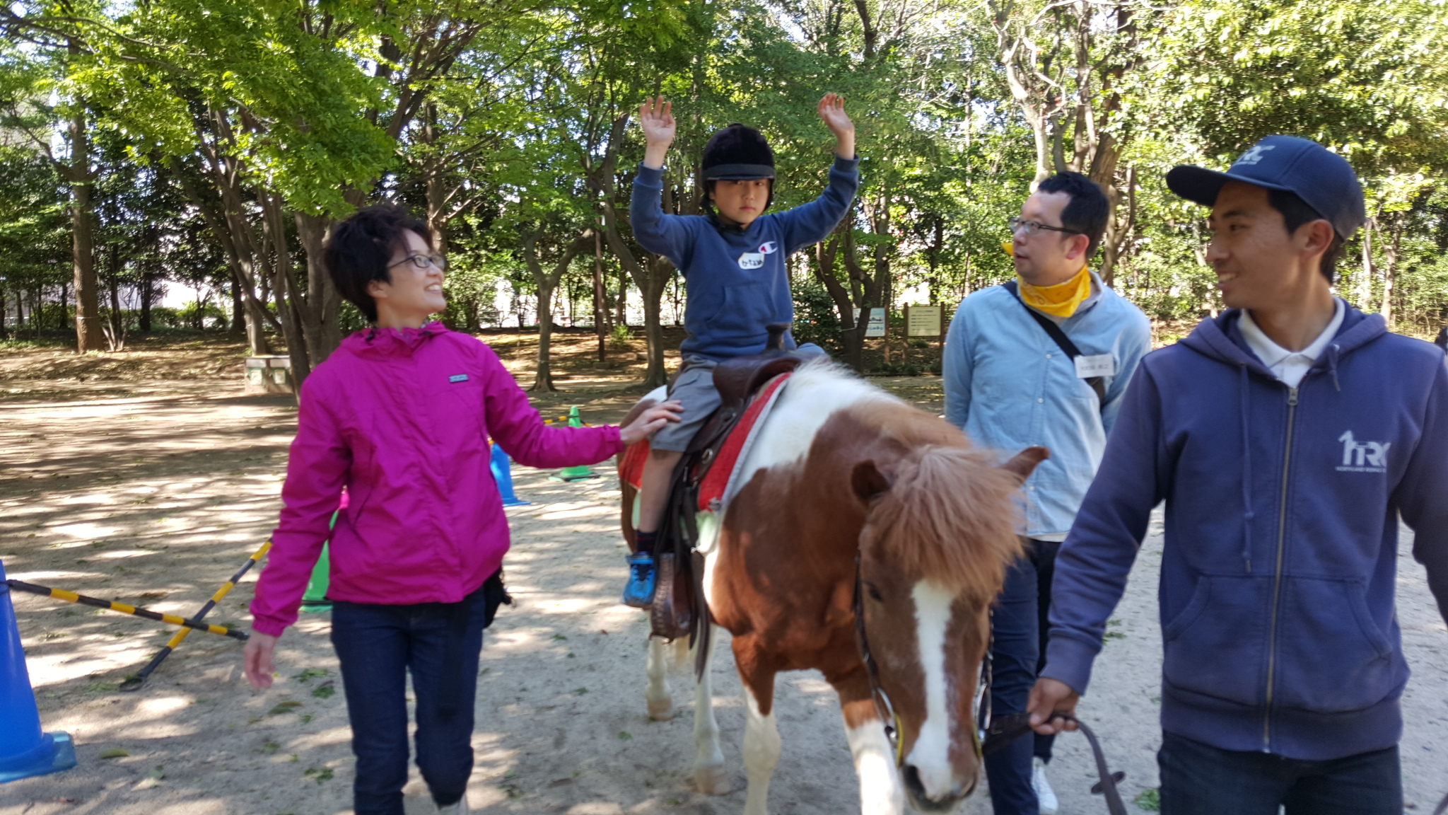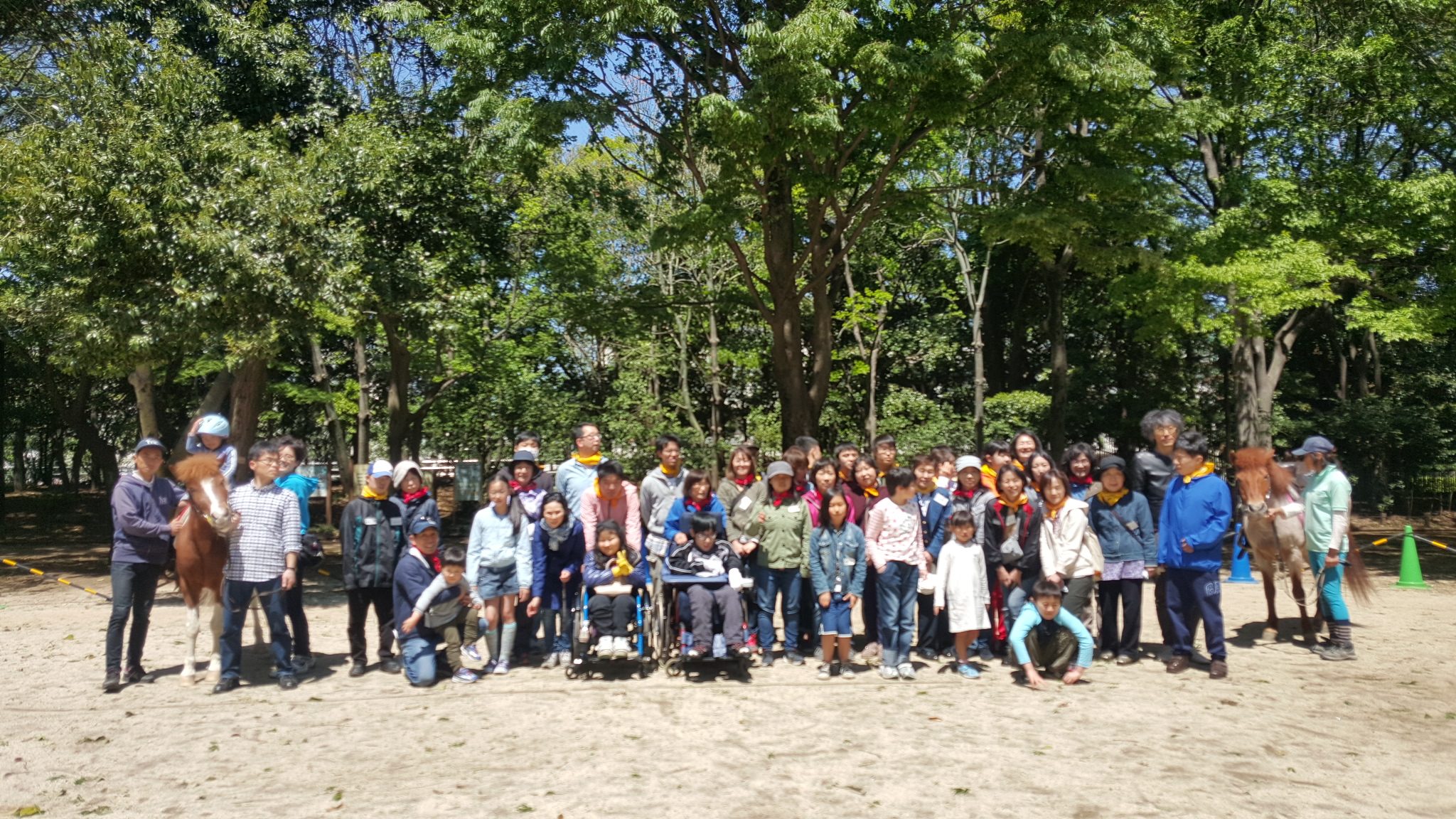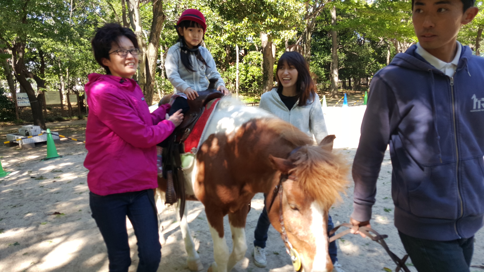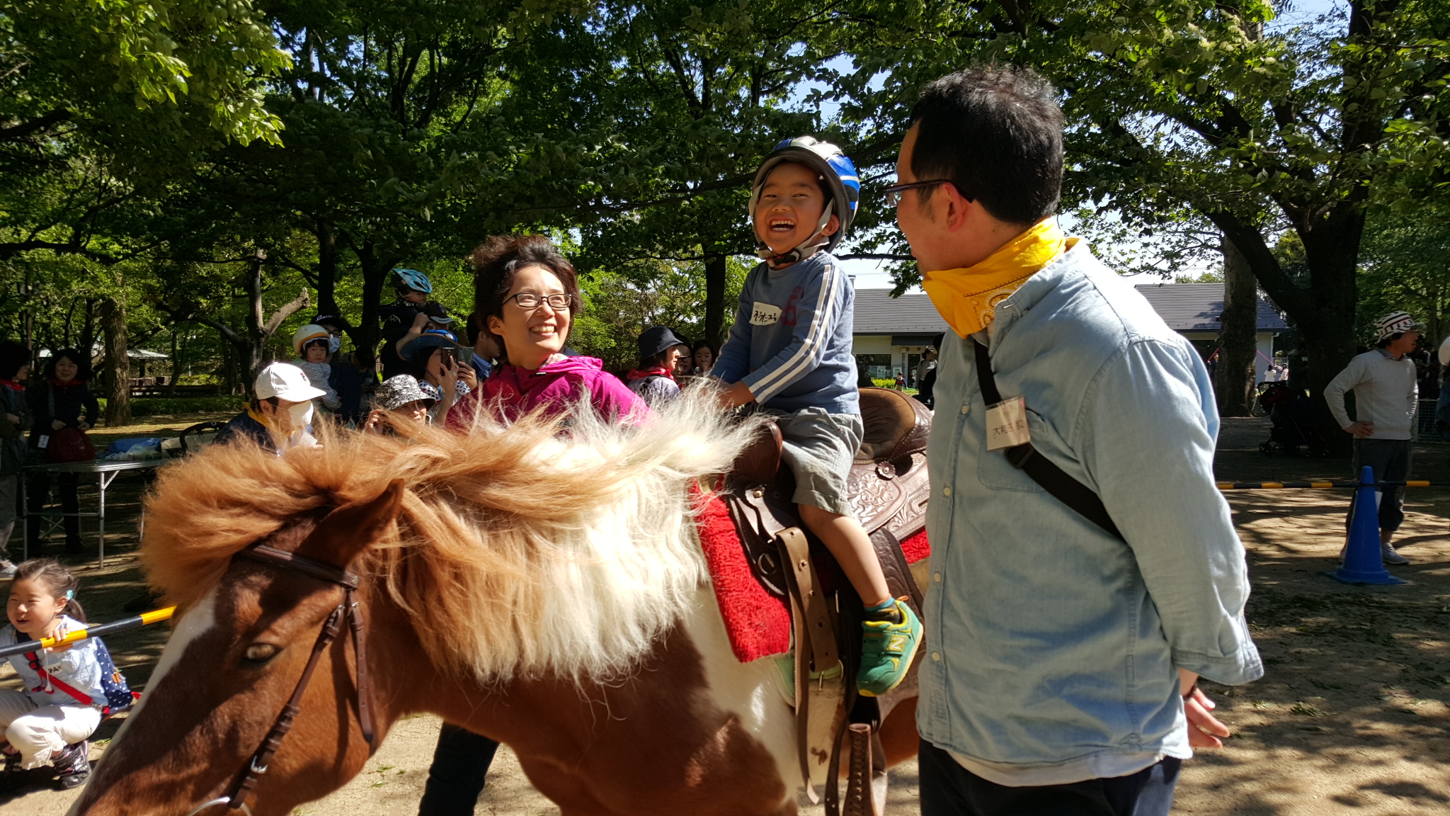 杉並区 井草森公園にて 出張乗馬&うさぎふれあい広場 2016年05月04日 杉並区わたぼうしの会主催 ポニー乗馬会午前中は、わたぼうしの会員さんが、予約制で乗馬を楽しみました。わたぼうしの役員さん、会員さんとボランティアの皆さんノースランドライディングクラブのスタッフと会員さん、南アルプス市乗馬センターのスタッフ等々集合写真です(^ー^) 午後は、一般のお客さんが長い列をつくっての ひき馬です。 慣れた子は、ばんざーいもできます♪ うさぎコーナーは、家族連れの皆さんで賑わっていました♪ 以前、学生ボランティアで乗馬介助を手伝ってくれていたメンバーも月日が経ち、お子さん連れで参加してくれる方々も増えてきましたよ(^O^) 楽しすぎるぅ~笑いがとまらな~い(^O^)現地に来てくださったボランティアの皆さま、お疲れさまでした。わたぼうしの会の皆さま、毎回、馬やうさぎたちにとって、安全にお客さまを受け入れる環境作りを考えてくださり、ありがとうございます。都会の公園で、楽しい雰囲気の中での乗馬会でした(*^^*)