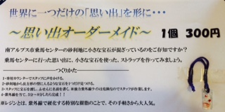 イベント情報について お知らせ 2015年09月14日 9月、10月イベントを企画しました。つきまして、イベント情報のタブを更新しましたので見てみてくださいヽ(^o^)丿!!!また、9月19日(土)に南アルプス市市民対象の無料乗馬会を開催します。毎月開催していますので、予約をしてみてください。 この時に、ポニーくらぶのメンバー主催で『オリジナルレジンストラップ』を作るという企画もあります。 ←見本内容はこちら↓↓無料乗馬会の参加は残りわずかです。お早めにご予約ください。ご予約・お問い合わせ℡:055-285-8181