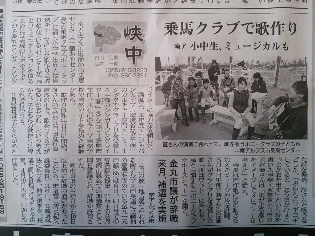 『乗馬クラブで歌作り』