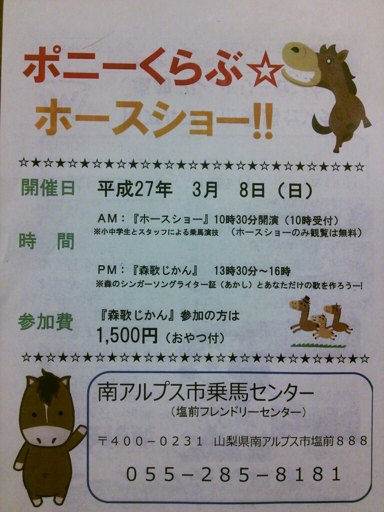 ホースショー!!のチラシは、こちらです♪