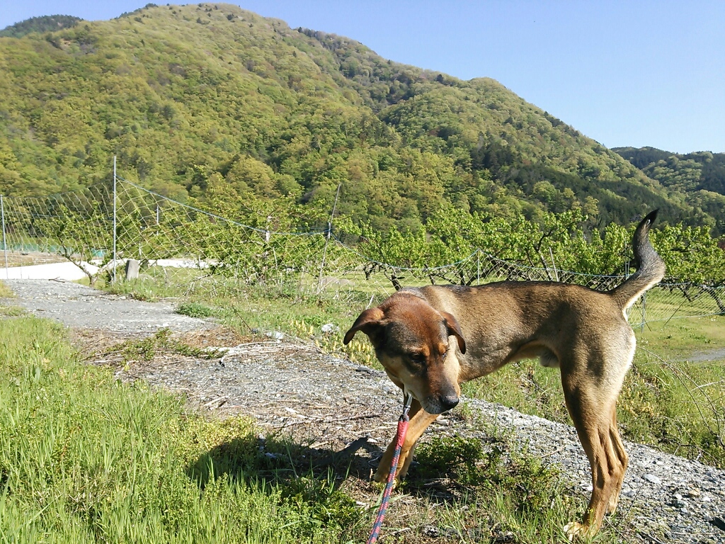 朝のお散歩♪ 日々の出来事 2014年05月09日 南アルプス市乗馬センターにて朝、犬のレオとお散歩をすると、こんな素敵な景色を歩けますよ~o(^o^)oレオは、と言いますと、下を向いて、においをかぎまわっています(*^^*)