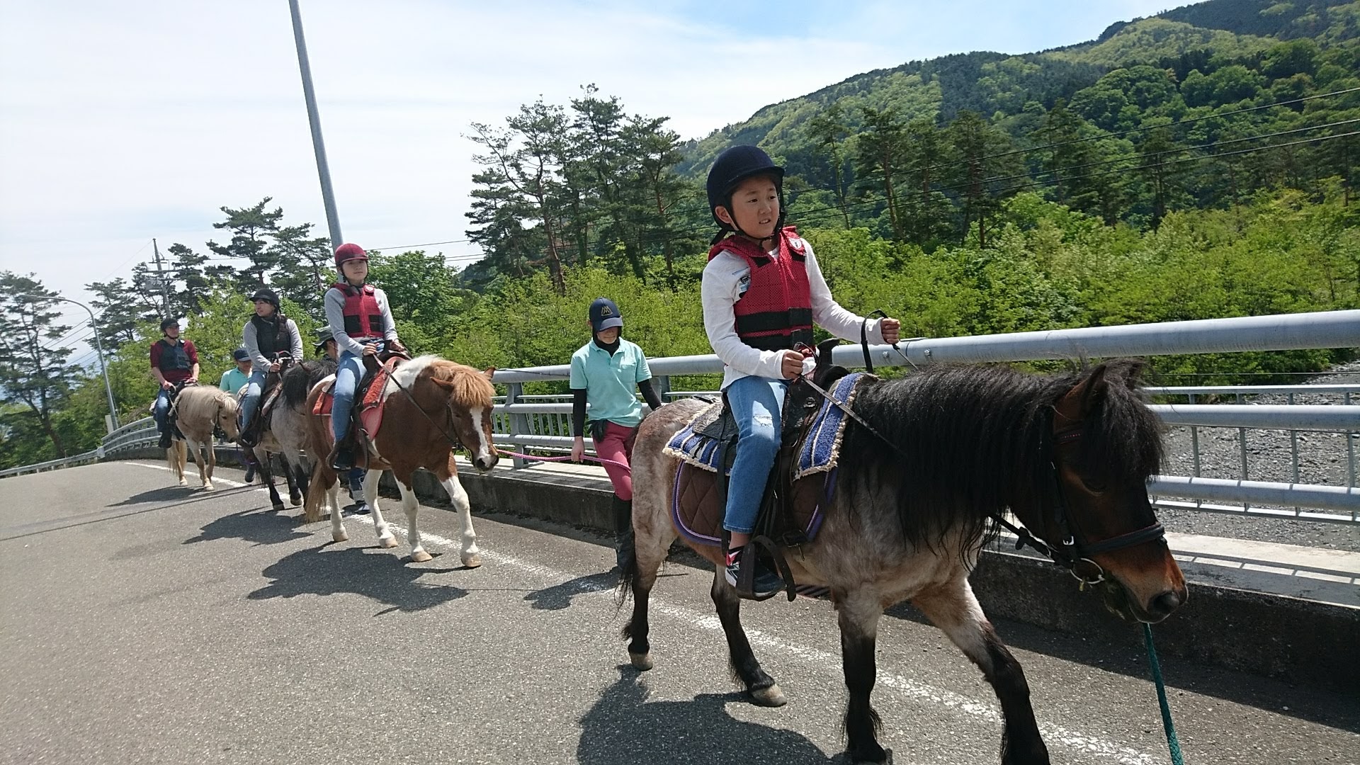 ご家族での外乗 日々の出来事 2019年05月04日 南アルプス市乗馬センターでは、早めにご予約を頂ければ、ご家族での外乗もできます\(^o^)/始めは、お父様が先頭で馬道に入っていきました! 途中から、親御さんは、子どもたちの姿を見たい(^O^)^O^)ということで、順番が入れかわりました。 馬道を走ったり、歩いたり、新緑を満喫します! 素敵な想い出になると嬉しいです(^O^) 帰りは、ボンゴが先頭です(^ー^)そして、あきな、コータロー、すももと続きました。 御勅使川を渡る頃には、背筋も伸びて、乗馬にも自信がついたでしょうか(^ー^)