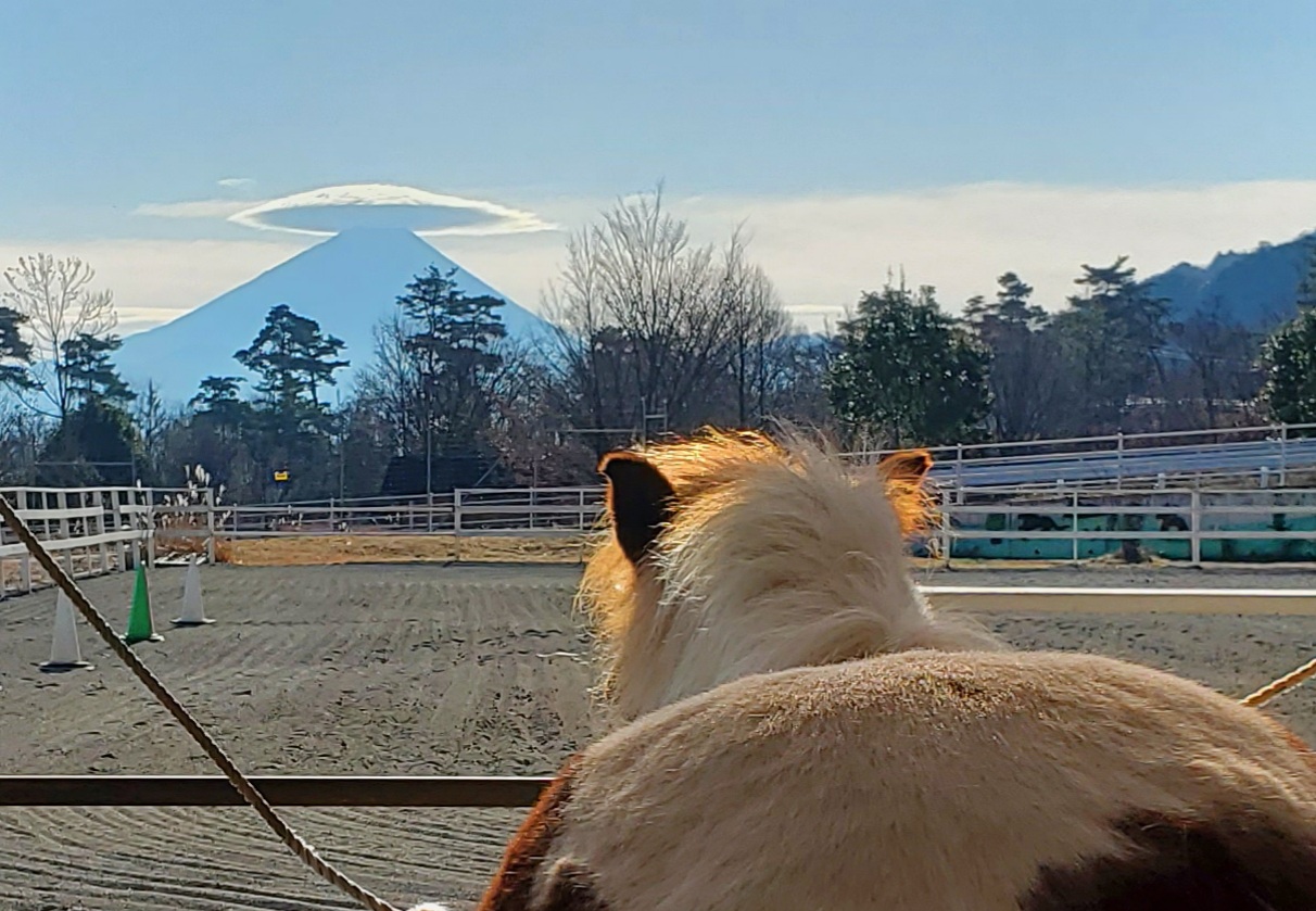 青空に 虹と指輪 日々の出来事 2019年04月29日 南アルプス市乗馬センターの青空に突然 現れた不思議な虹!!ゴールデンウィークが始まって、ひき馬のお客さまで賑わっている時の出来事です(^O^) 形も変わってゆくので、乗馬体験の方々と「神秘的な虹ですね~」と、話しながら、馬の上からの素敵な景色(^ー^) そして、頭上を見上げると、、、光の輪っかが!!「もしかしたら、願い事が叶うかも~?!」そんな気持ちになります! 太陽と重なり、指輪のようになりました! 富士山も久しぶりに 顔を出して、虹を見ていましたよ\(^o^)/次の日の山梨日日新聞によりますと、それぞれが、最も珍しい現象で上空を横切る虹のような『環水平アーク』と、太陽を貫くように光の輪ができる『幻日環(げんじつかん)』という現象だそうです(^O^)